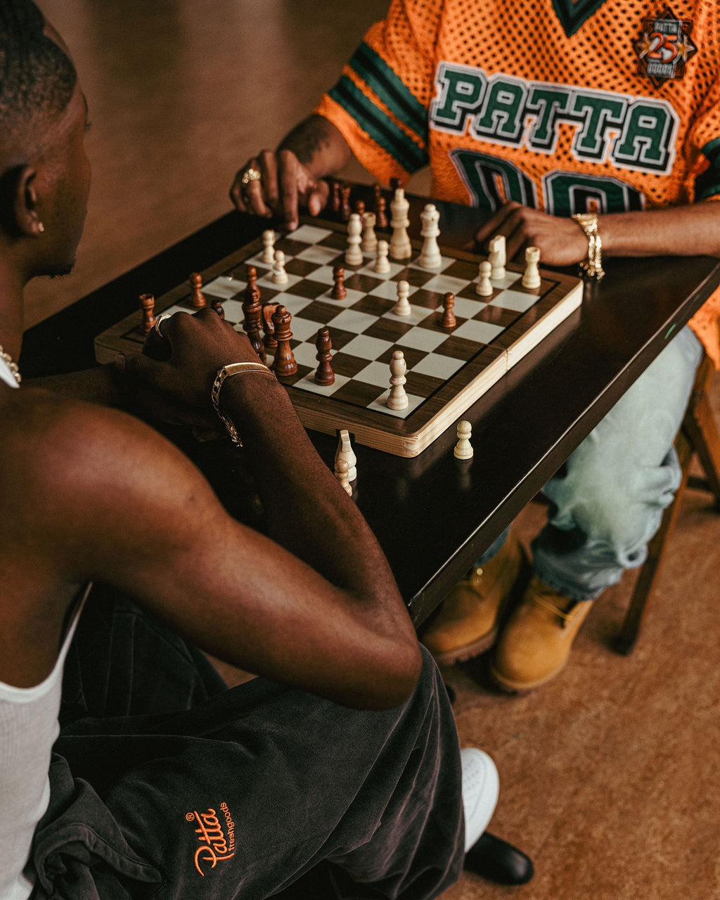 “PattaGoods” is the product of a mutual love for the environments both brands came from: block parties, record stores, rec centers and the everyday spaces where people gather and grow. That history comes through in the campaign; The Soul Children of Chicago youth gospel choir founded by Dr. Walt Whitman performs “Lift Every Voice and Sing,” adding a sense of pride, memory and hope to the project. Both lookbook and video were shot on the historic South Side of Chicago at the First Presbyterian Church, bringing the collection back to a place rooted in learning, expression and togetherness.