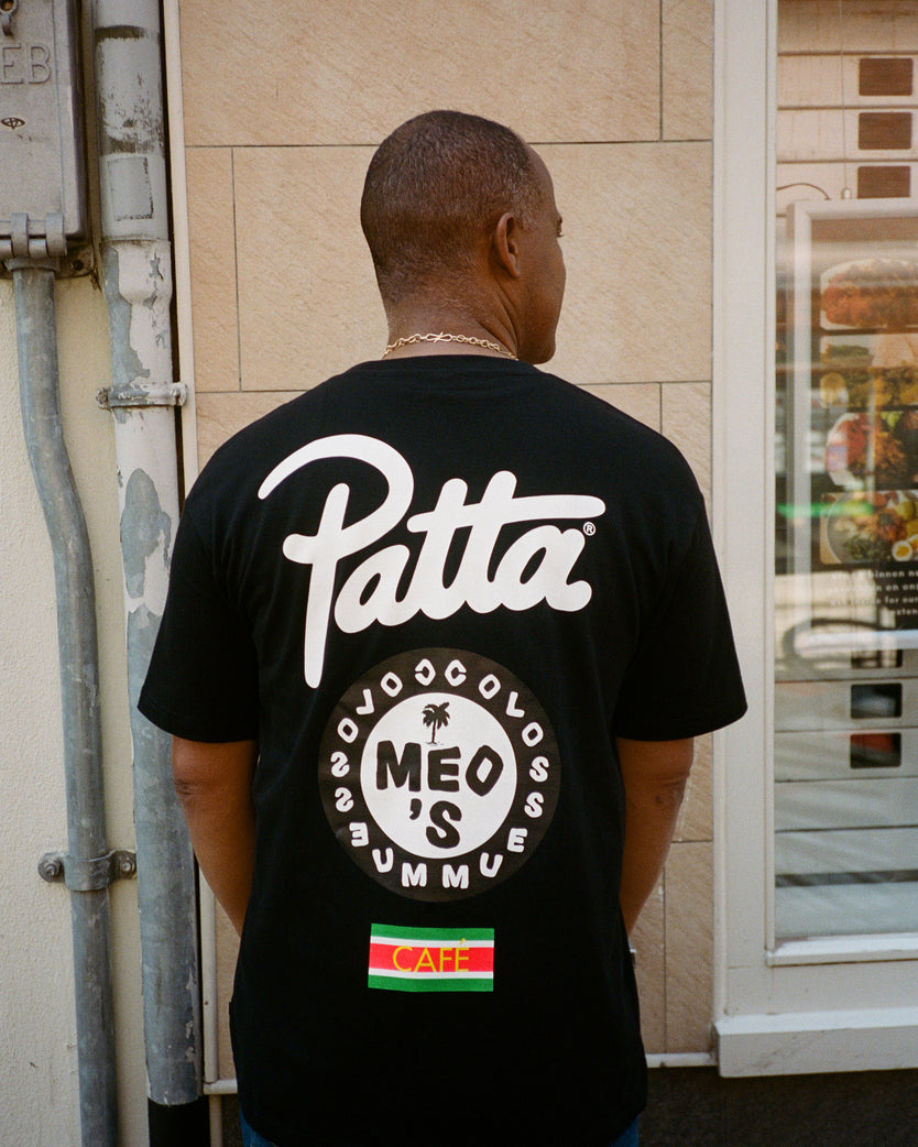 The Patta x Meo's Colosseum T-Shirt will be available exclusively at Meo's Colosseum, Lootsstraat 5, Amsterdam and at Meo’s Colosseum’s stand at Kwaku Festival from Saturday, July 15th.