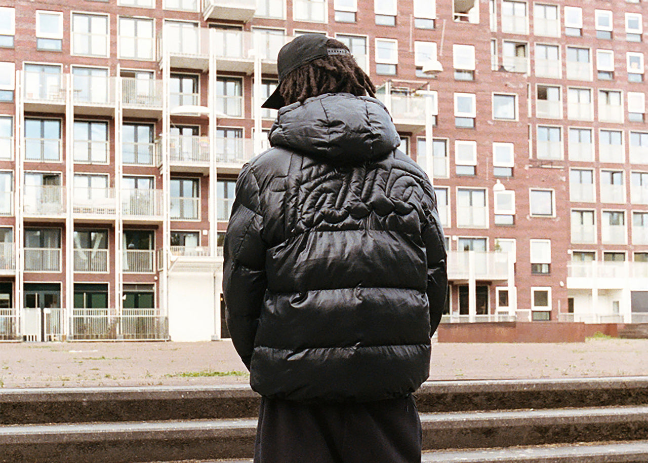 Patta Quilted Script Logo Puffer Jacket (Black)